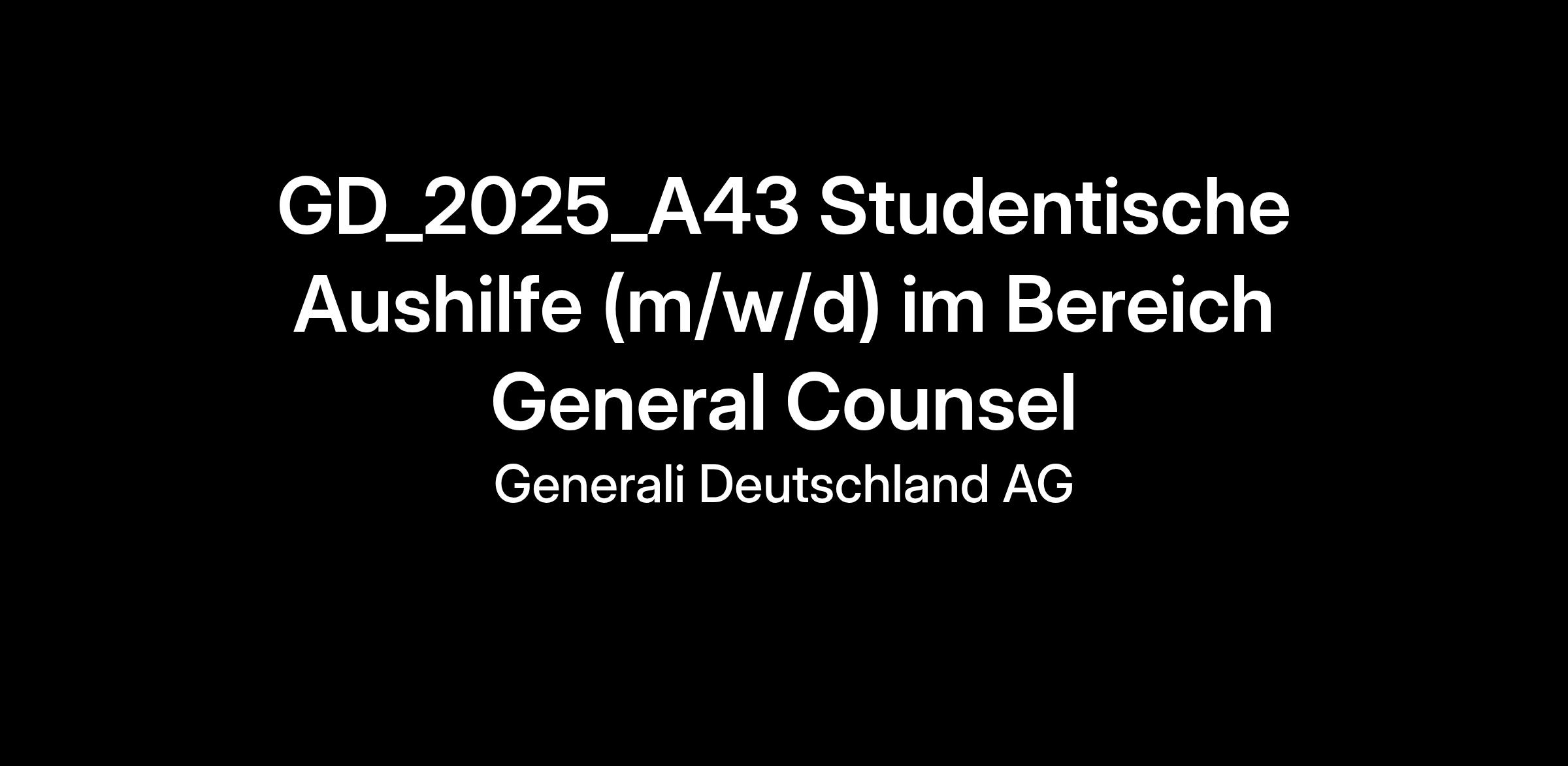 In der Rechtsabteilung der Generali Deutschland AG bietet sich ein breites und interessantes Aufgabenspektrum, bei dem Du unsere Teams sowohl im Gesellschafts- und Kapitalmarktrecht, im Medizin-/Krankenversicherungsrecht, im Wettbewerbs-, EDV- und Kartellrecht als auch im allgemeinem Versicherungs- und Versicherungsaufsichtsrecht oder im allgemeinen Zivilrecht unterstützen kannst.