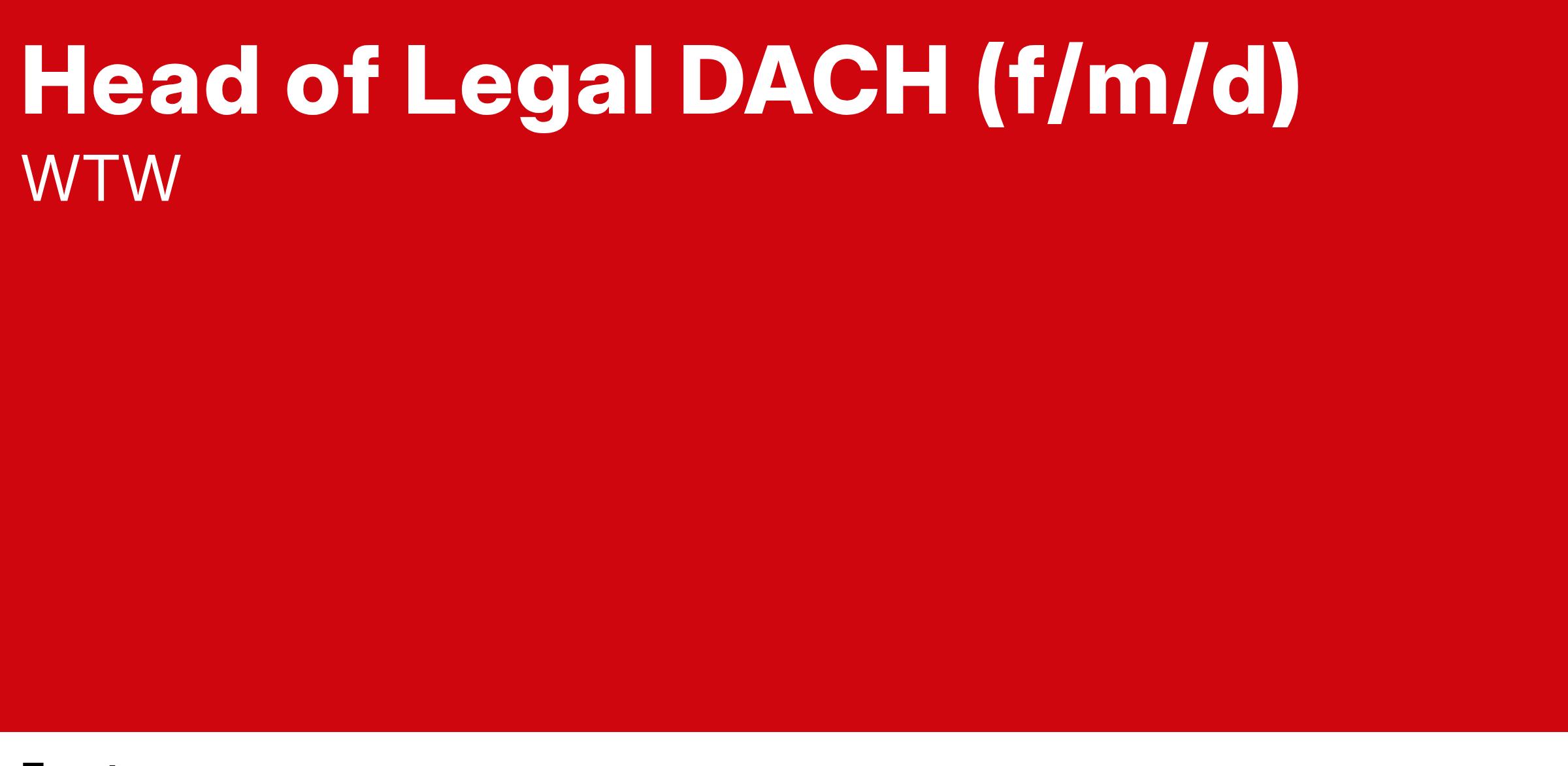 As Head of Legal for DACH (Germany, Austria and Switzerland), you will be part of the European Legal Team, within WTW’s Office of the General Counsel (“OGC”). Reporting to the Deputy General Counsel for Northern Europe, your role will be to oversee the provision of all legal support to the various businesses with the DACH region, primarily Germany. The role is broad in nature, covering a stimulating and varied range of legal issues, contentious and non-contentious matters, and will include working with external Counsel and the other functional leads in the DACH region. You will have managerial responsibility for the other members of the German legal team (one lawyer and one junior lawyer).