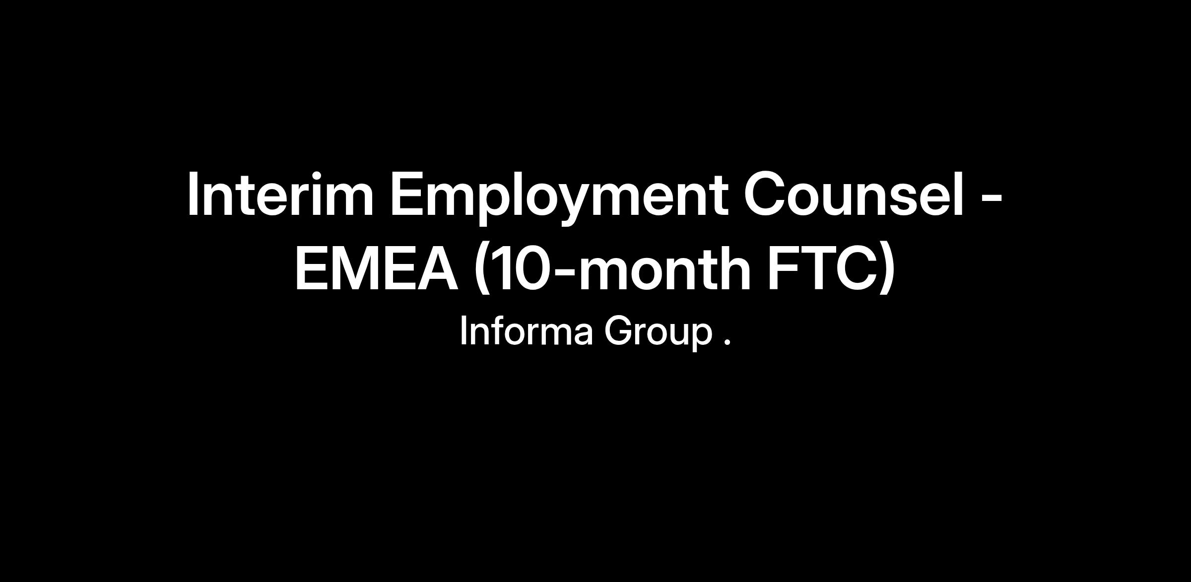 Reporting to the Head of Legal, HR - EMEA, the Interim Employment Counsel - EMEA will be required to provide good counsel, guidance and support on a broad range of employment law matters impacting mainly EMEA and Group.