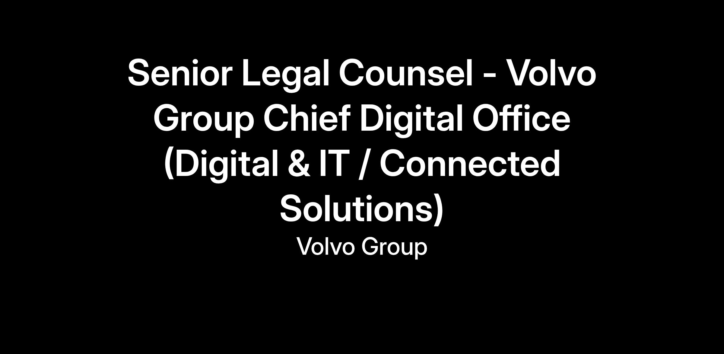 We are recruiting a Legal Counsel to provide global legal support to Digital & IT and Volvo Group Connected Solutions. You will monitor, assess and handle legal and compliance risks within the area of digital transformation as well as designing, operating and supporting customer-oriented connected solutions and services for Volvo Group products. You will work in close co-operation with the technical and business organizations. You will report to the Head of Legal & Compliance Chief Digital Office.