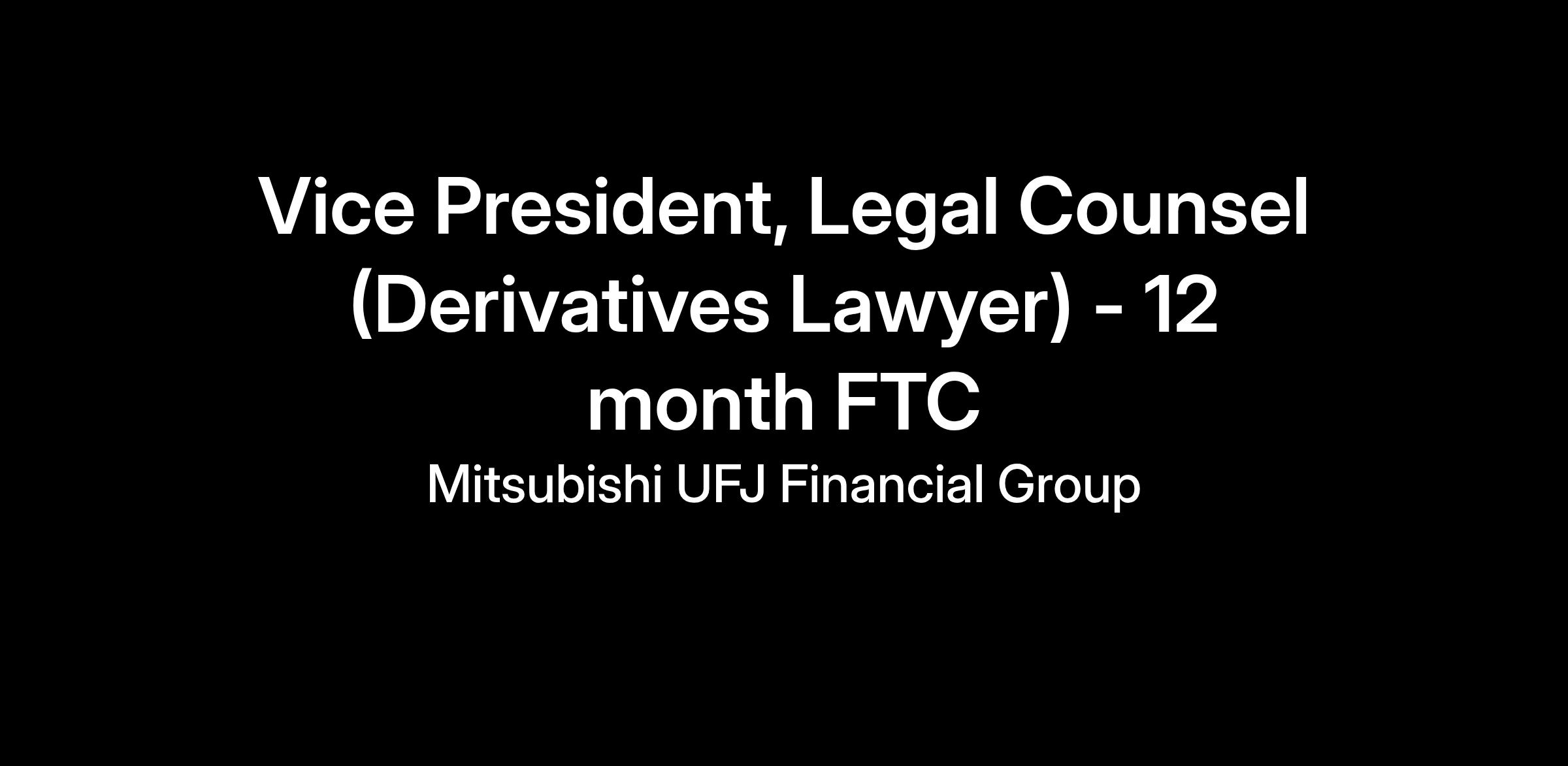 We have an exciting opportunity for a Legal Counsel to join the MUFG EMEA Legal Department as a fixed term contractor, based in London. The role will be primarily focused on supporting a key strategic project for the EMEA region but will also support other activities across the Global Markets and Corporate & Investment Banking (CIB) Legal teams.